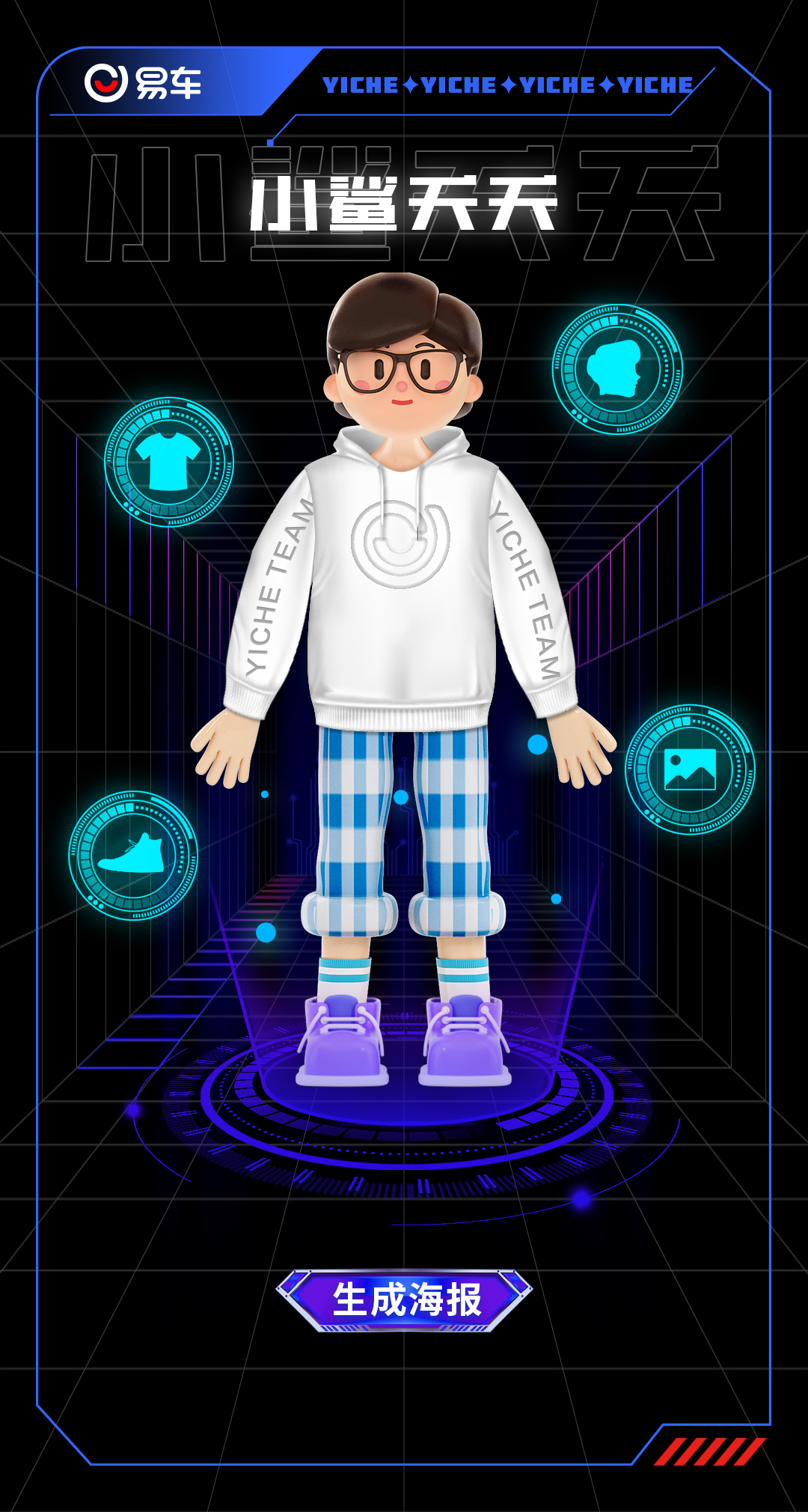 在「艺空间」内,员工可以通过换装定制专属于自己的「小鲨夭夭」虚拟形象,让员工获得归属感的同时还可以在年会当天将其形成海报进行二次传播,非常有意义哦~