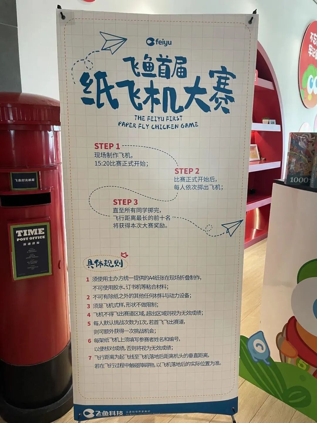 飞鱼科技在公司举办了第一届纸飞机大赛,简单又有趣!现场制作飞机,飞行距离最长的前十名还有大奖哦~
