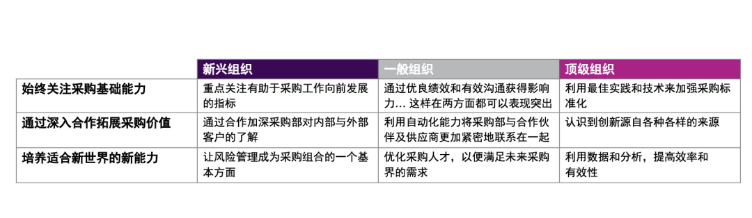 优秀的采购组织将终生学习与实时迭代更新组织架构适应环境的改变与企业战略,注重专业基础能力与采购影响力及采购创新。
