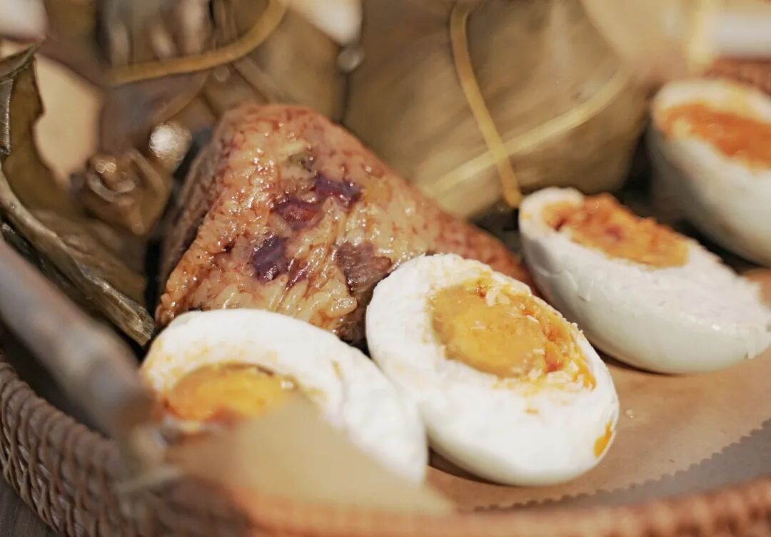 里面还有6个不同口味的粽子、2颗咸鸭蛋