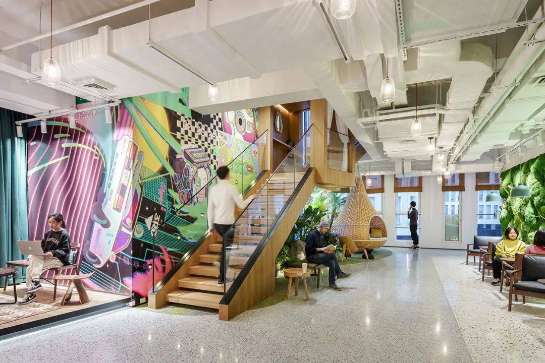 空间以静态的存在,带给人们动态的体验,而一系列精妙构思的互动触点与内容架构,在移步易景中让品牌信息和文化价值的传达和感知恰到好处,一路随行,进而深入人心。比如莉莉丝游戏上海华鑫校区,就是利用各种元素将创造力、艺术力和想象力在办公空间之中融合的一个绝佳案例。