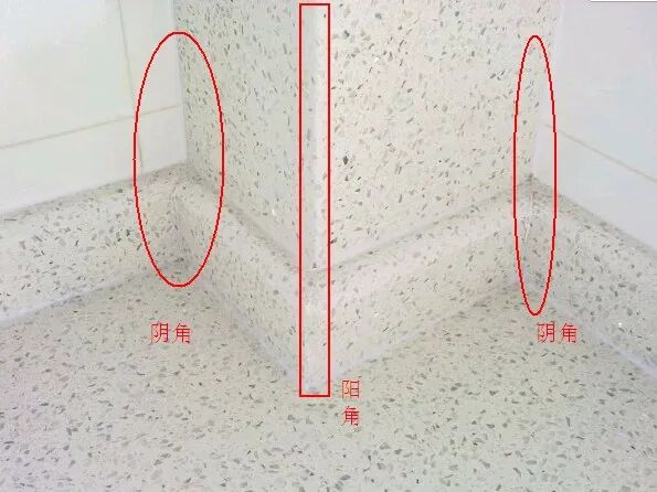建筑构造之一,阴角指凹进去的墙角,如顶面与四周墙壁的夹角;阳角指凸出来的墙角,如走道转弯处两堵墙形成的夹角。