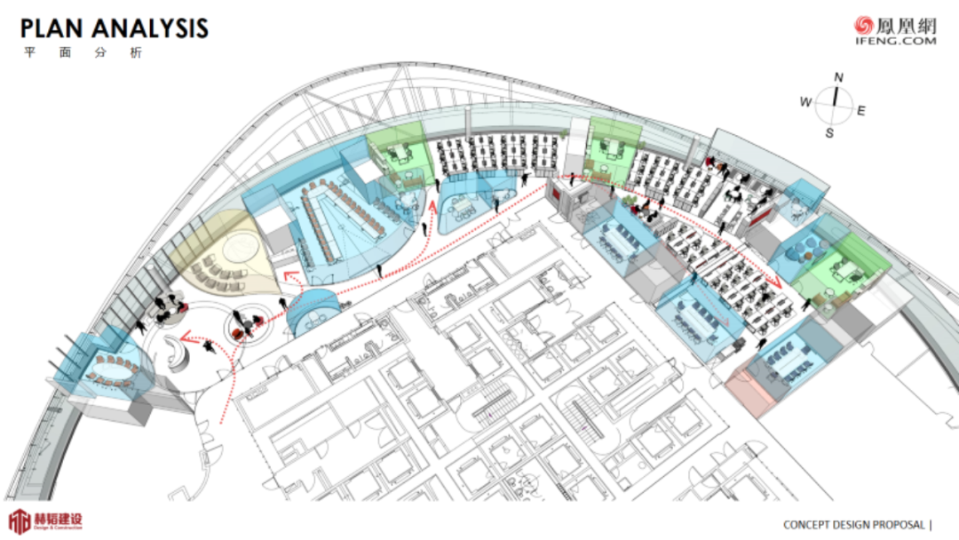 指人在办公室内和办公室外移动的点,结合起来就称之为动线。合理的动线设计在办公空间中特别重要,如何让办公室内走动的人轻松愉快,空间合理而便捷,具备装修甲级资质的工装公司都会合理的规划动线,注意每个细节。