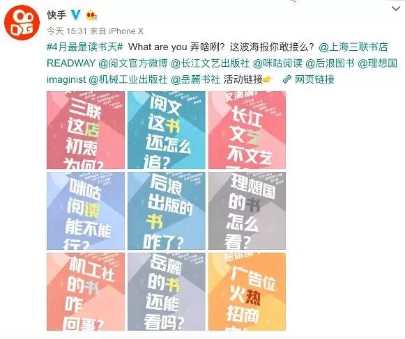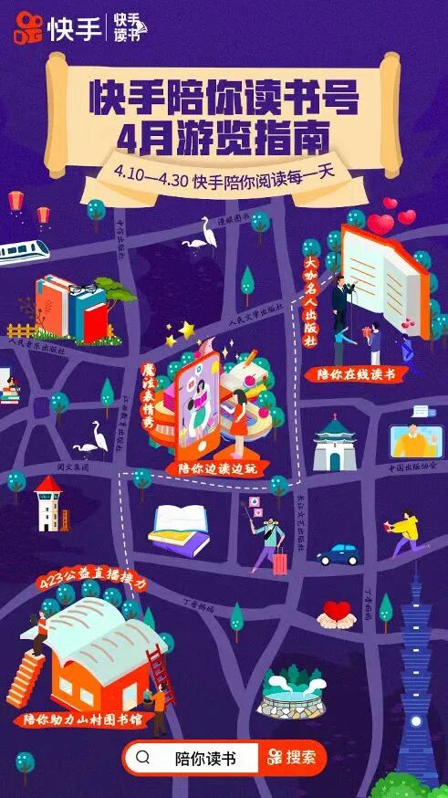 并发布读书会海报:快手陪你读书号4月游览指南。