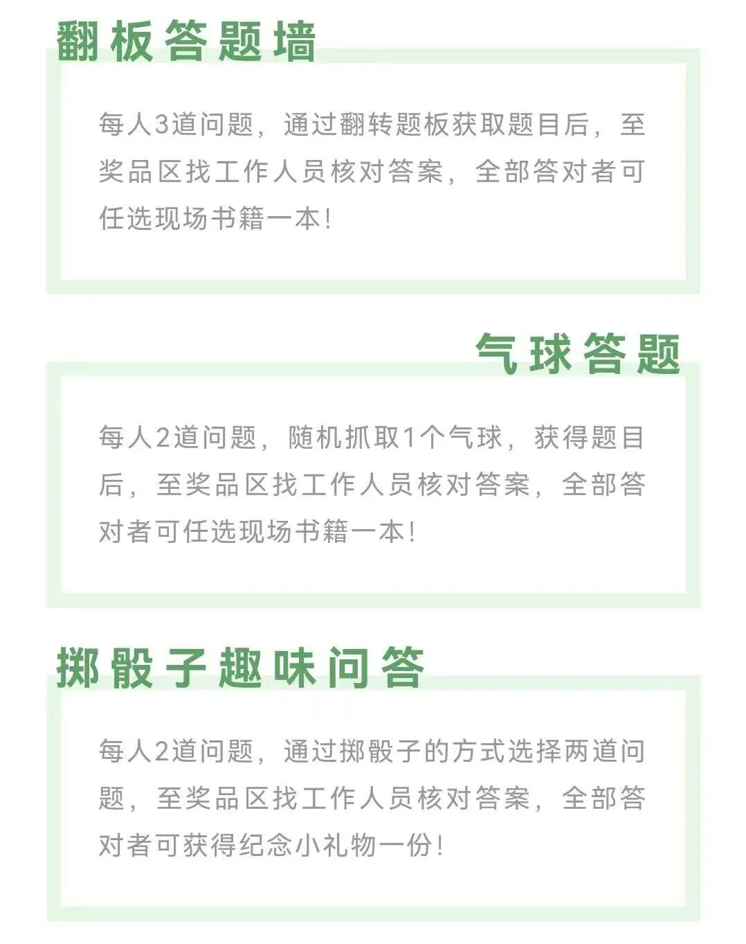 有3种参与方式:翻版答题墙、气球答题和掷骰子趣味问答,一起来看看具体怎么玩吧!