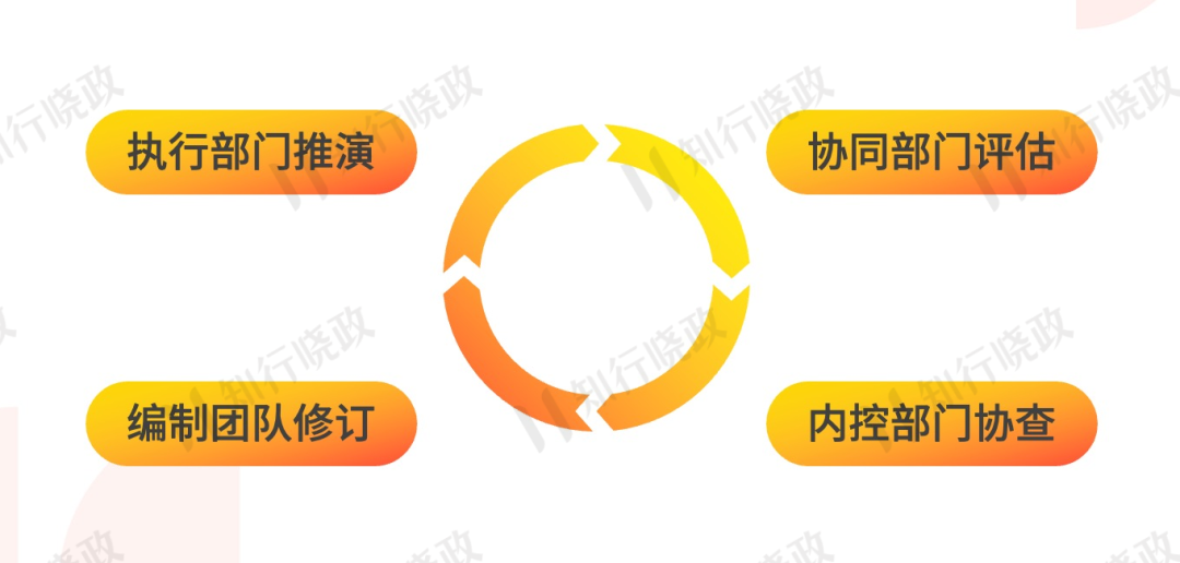 最后汇总三个部门的意见,制度编写团队进行修订,再通过书面形式交由上述三个部门确认,完成评估推演闭环。
