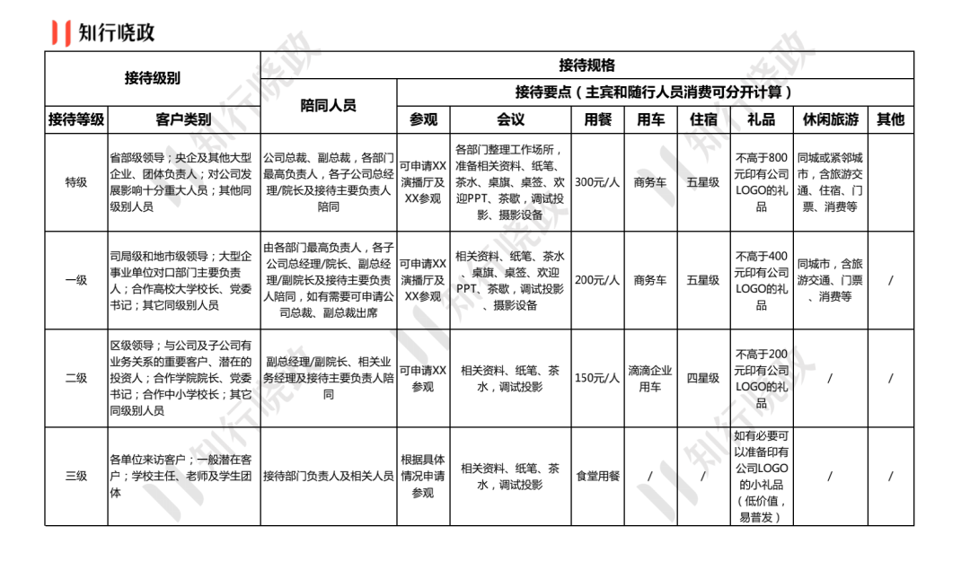 特级:省部级领导;央企及其他大型企业、团体负责人;对公司发展影响十分重大人员等其他同级别人员