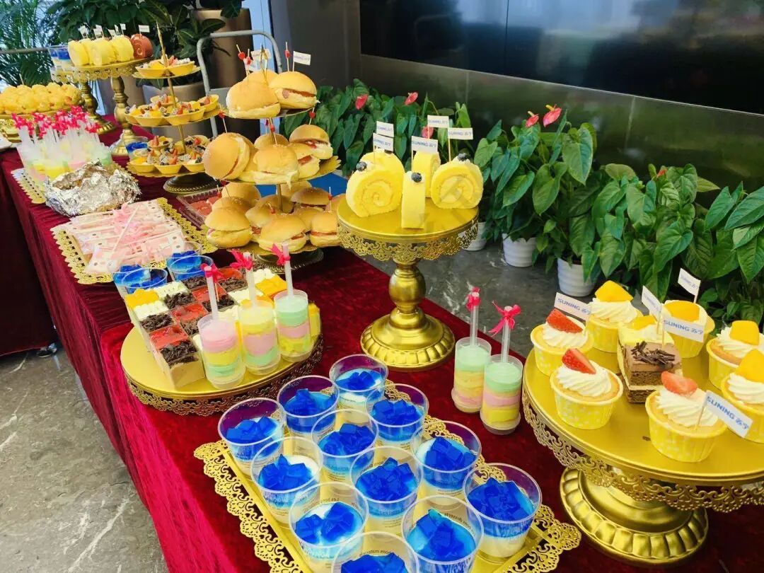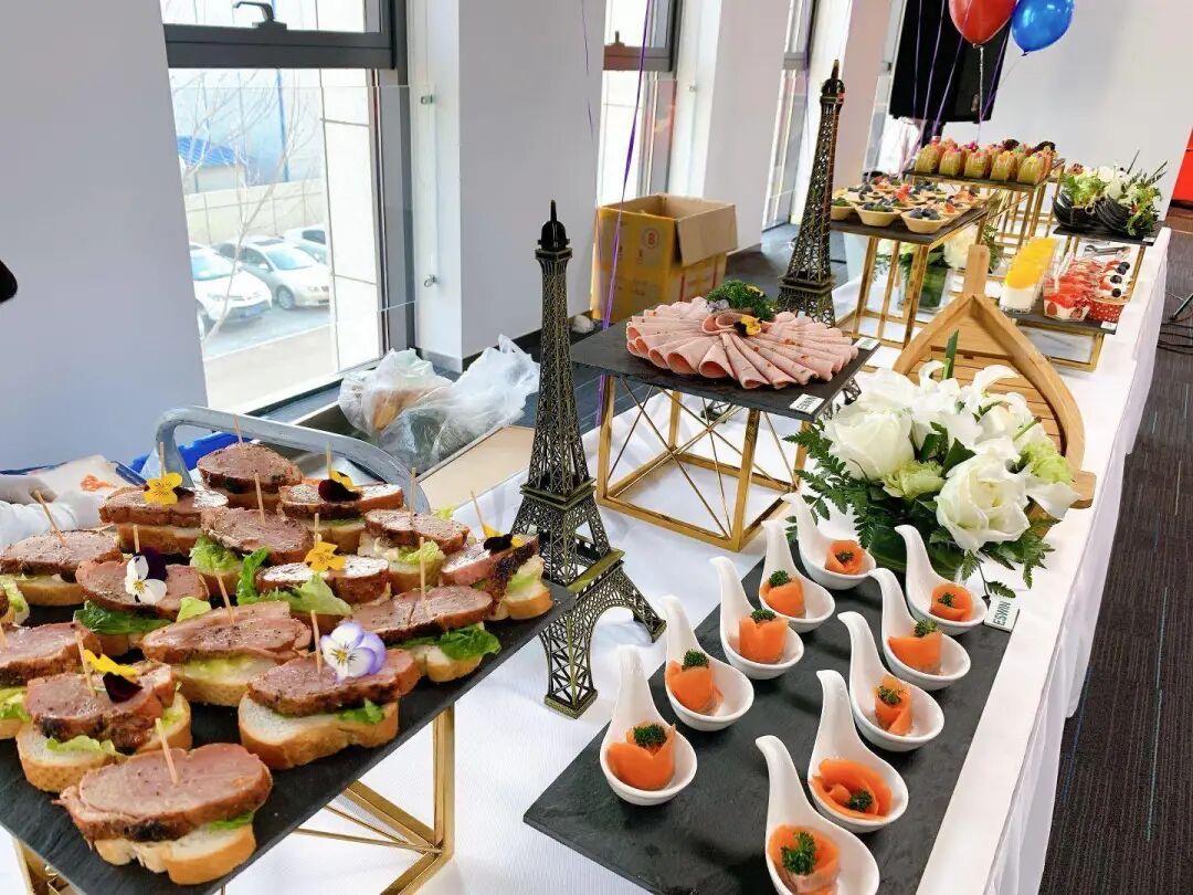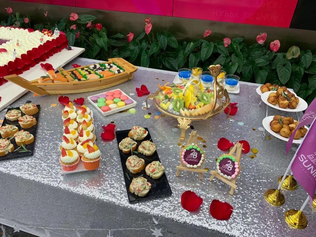 除了有定制主题蛋糕、甜点、汉堡,还可以有寿司和各色饮品,如果可以,准备一大份海鲜套餐更能让大家感到惊喜!