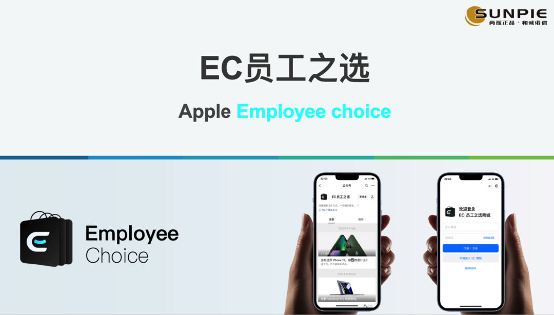 Employee Choice(简称EC)是企业员工选购Apple产品的专属平台。商城采用一企业一专属线上商城的形式,由Apple授权的经销商提供专业支持和统一服务。