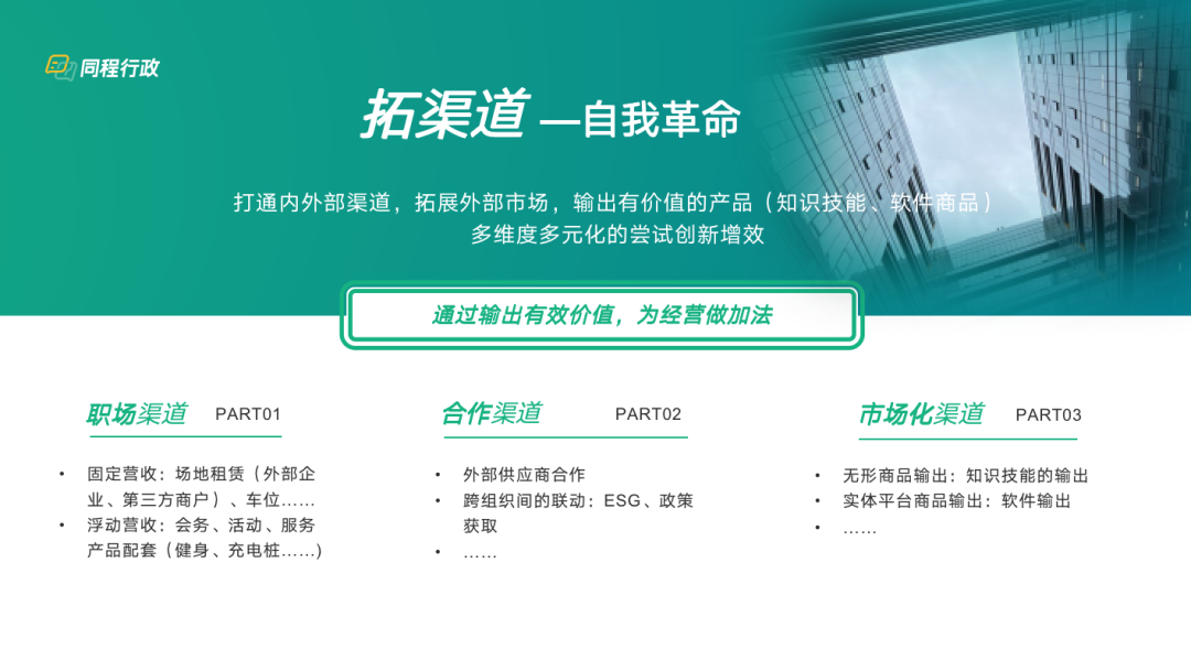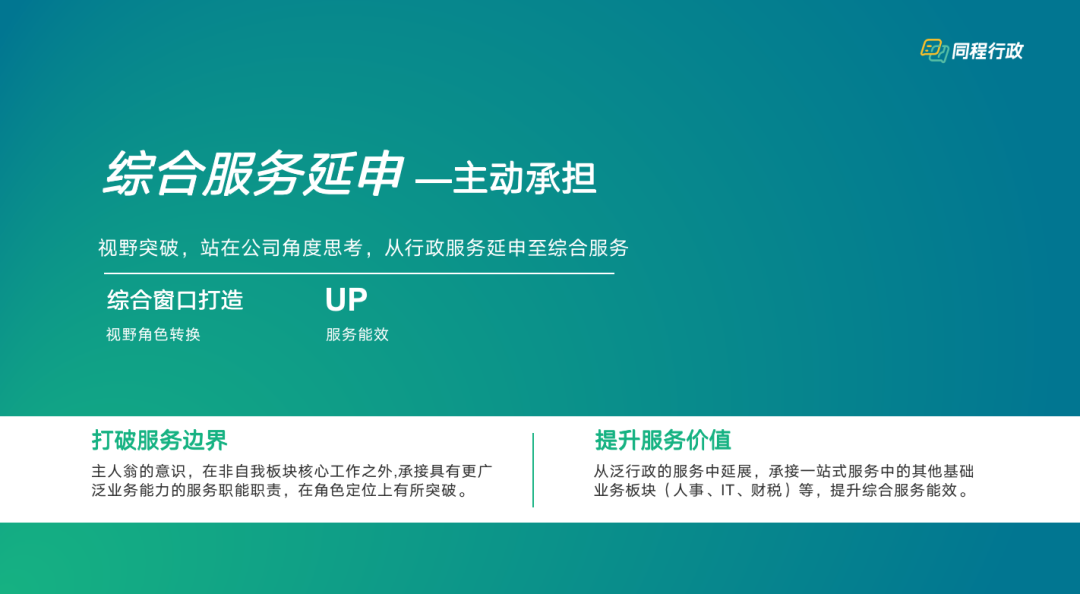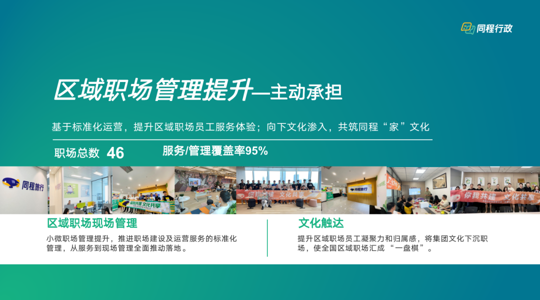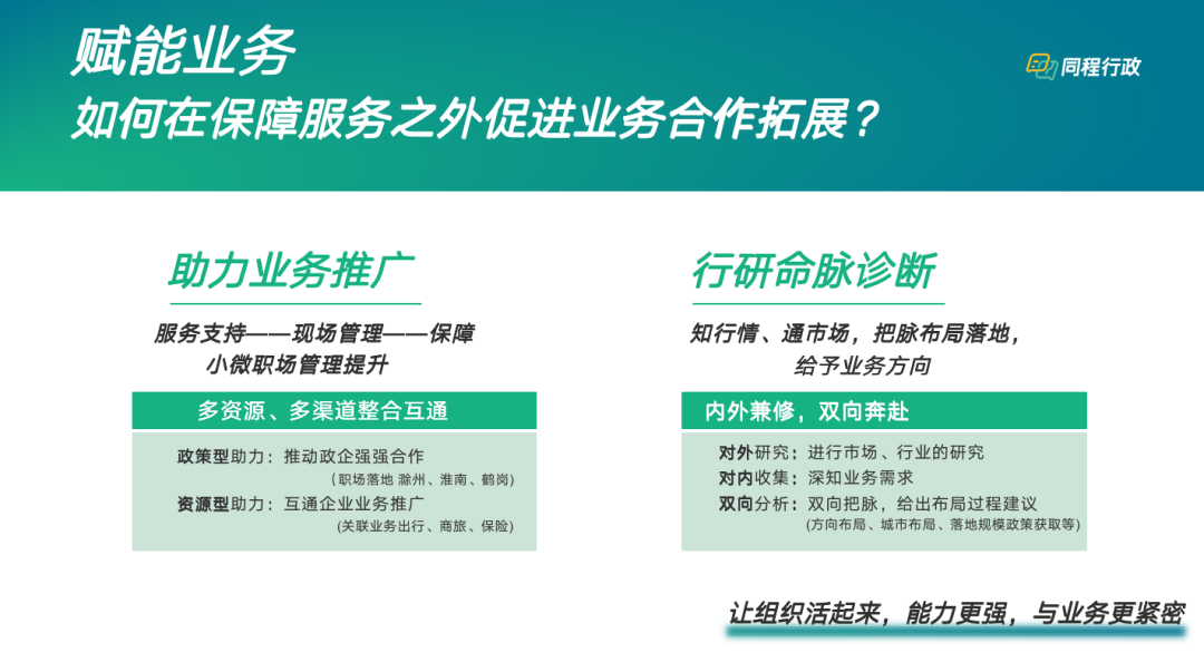 除了综合服务,行政能做的还很多,肖鹏飞继续分享了同程行政主动承担的另一部分事务。