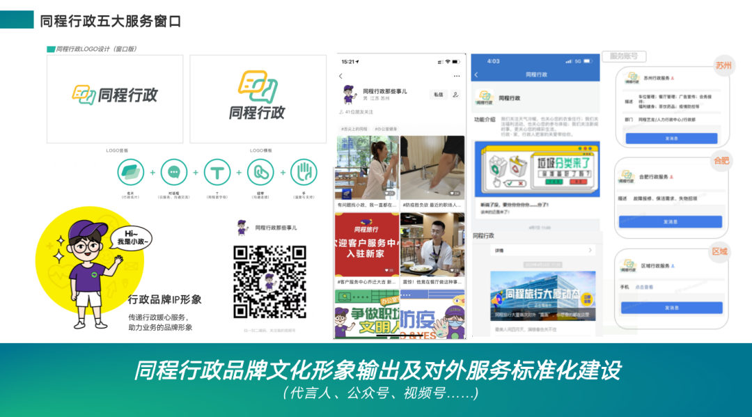 “为什么要做五个窗口、三大平台、两大体系?文化形象的输出意味着我们需要把自己的工作晒出来,让职场里各个角落都有同程行政的logo,有同程行政的联系方式,设计自己的IP形象,在公司内部有自己的形象代言人,让同程行政的服务对自己员工、也对外全部开放。”