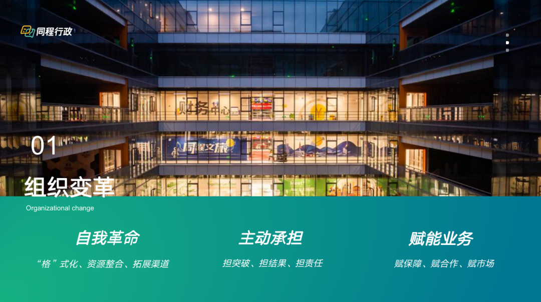 在2022知行晓政S100行政峰会上,他分享了面对企业业务受到疫情冲击,同程行政是如何从组织变革和企业文化重塑两方面,展开行动赋能业务充分发挥自身价值的。