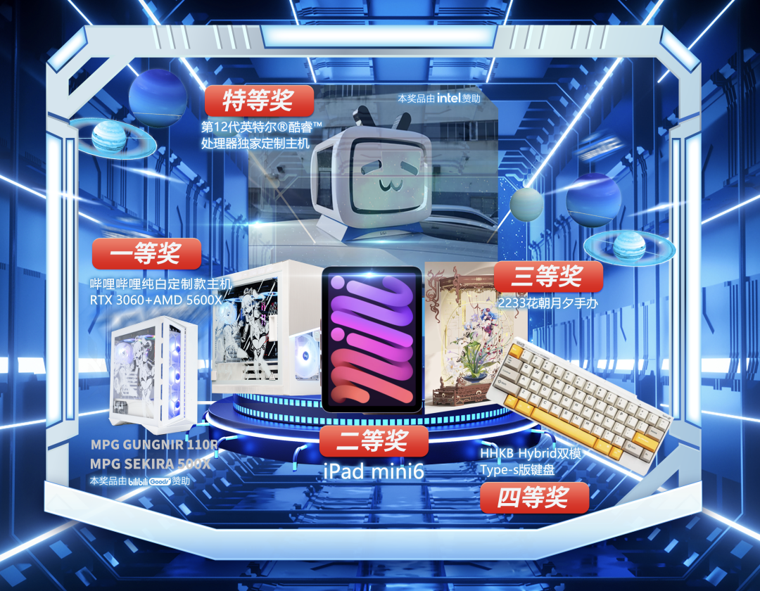 去年b站的1024准备了键盘、主机、手机等礼品。