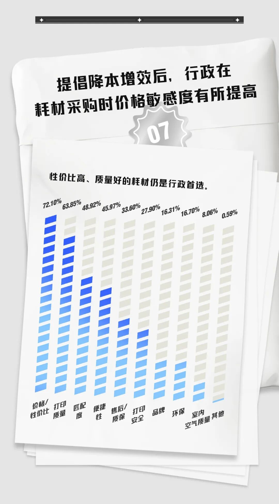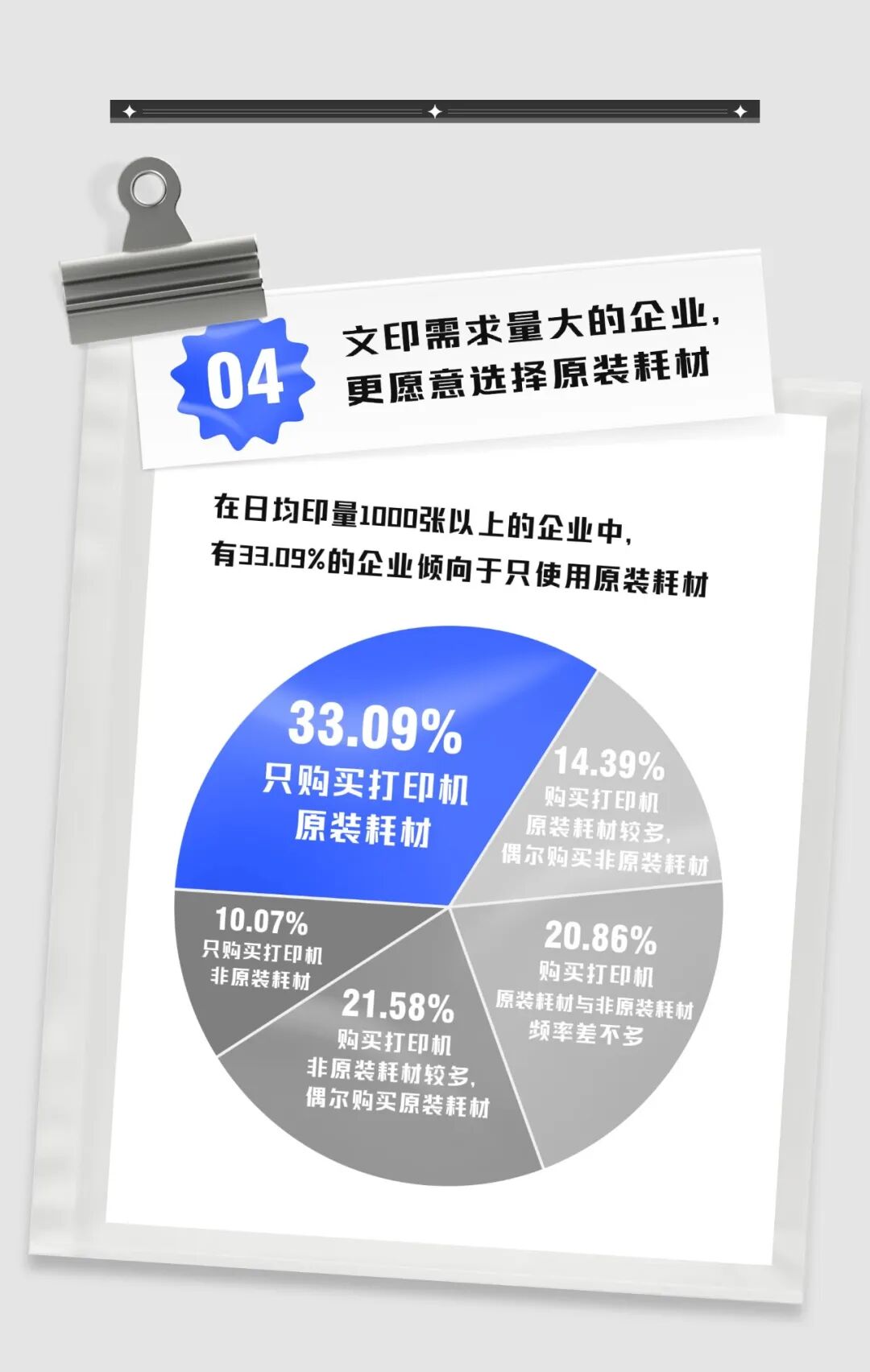 3、文印的质量,很大程度上取决于耗材的选择。性价比高、打印质量好的耗材,成为行政首选。