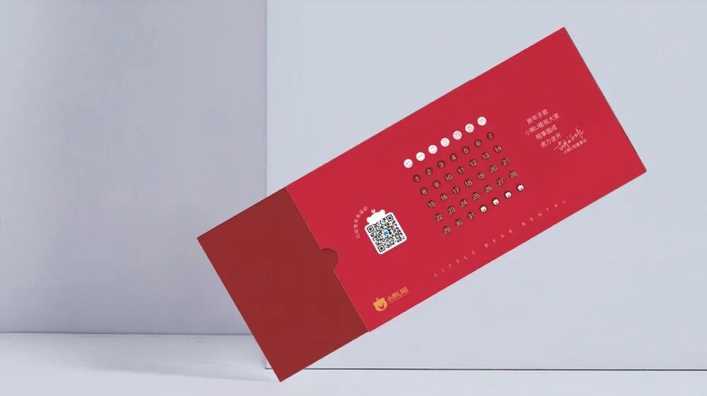 *小熊U租抽拉主题贺卡,背面可调节周历,扫描二维码还有独家新年祝福