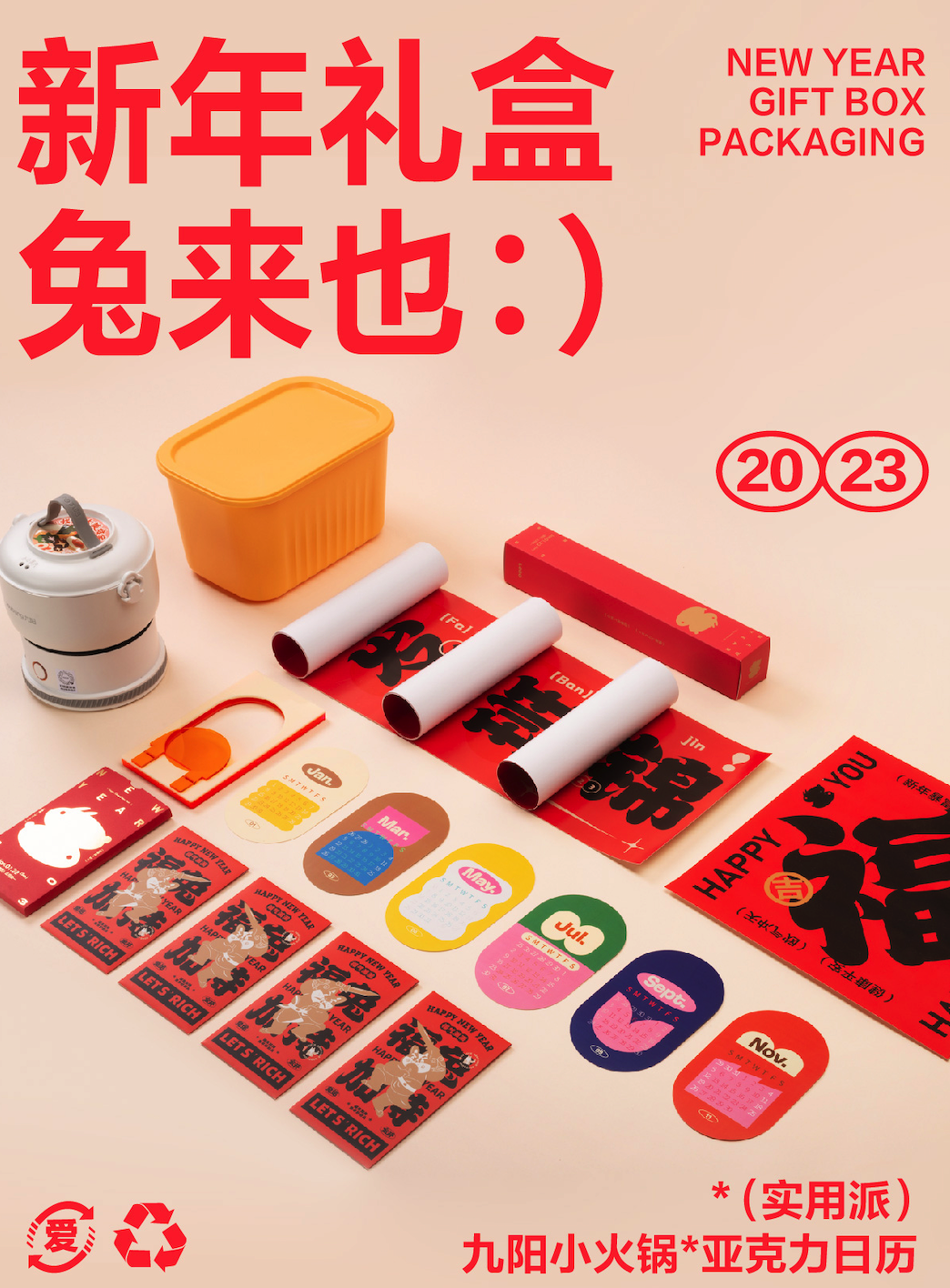 e. 新年礼盒里的日历也可以更有趣,比如套圈圈版本、定制成兔子形象的等⬇️