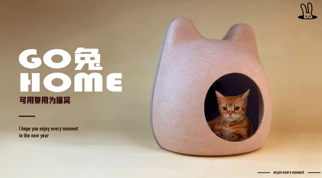 可以从包装上下手!比如一款兔子造型的外盒,还可复用成猫窝,环保又有趣。