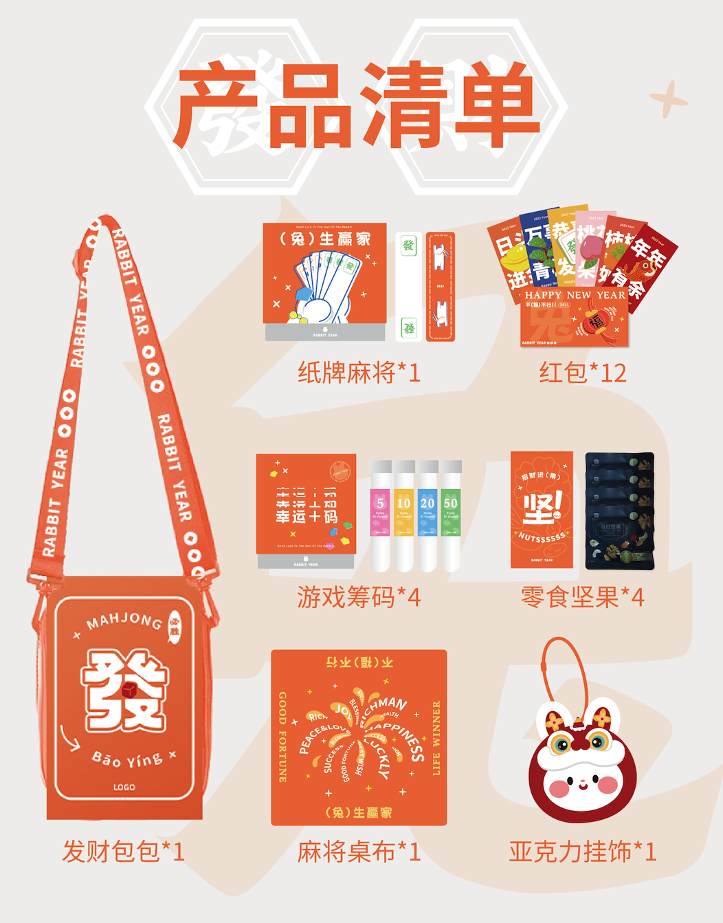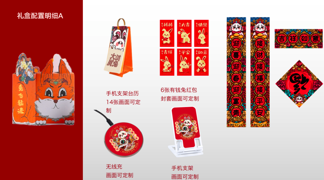 b. 还可以是一份欢聚大礼包,把兔年限定扑克、mini麻将、定制桌游等好玩物品一次配齐,让大家嗨享春节假期!