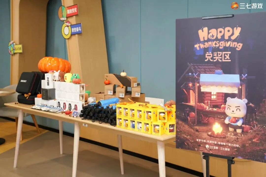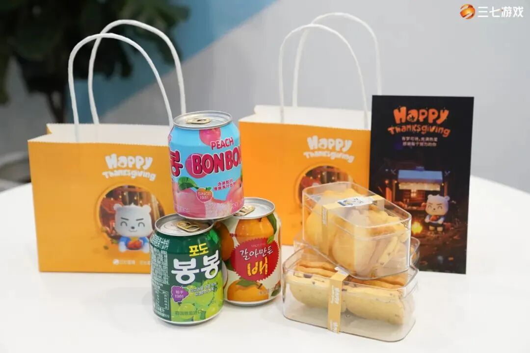 三七游戏在感恩节带来元气补给,香甜的光光熊曲奇饼+能量饮料,为员工补充满满元气,一起加油!