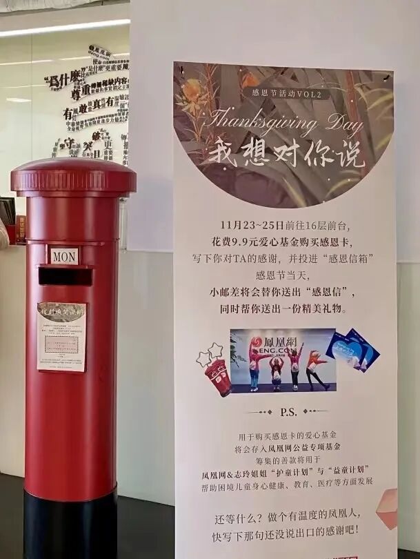 让感恩节限定「情诗」告白更有仪式感,还可以在公司内部摆放一个「邮筒」哦~