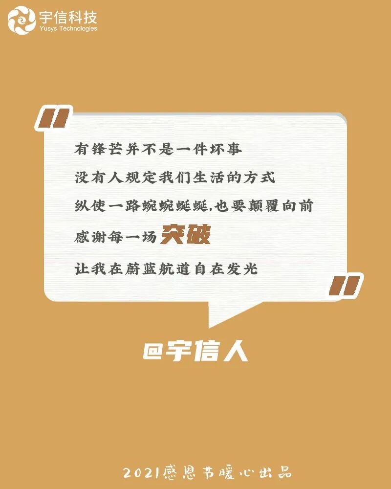 宇信科技在感恩节推出互动话题「你最想感谢自己的一件事」,并送出宇信人专属2021感恩节暖心定制养生礼盒。