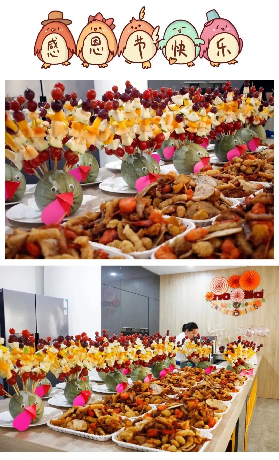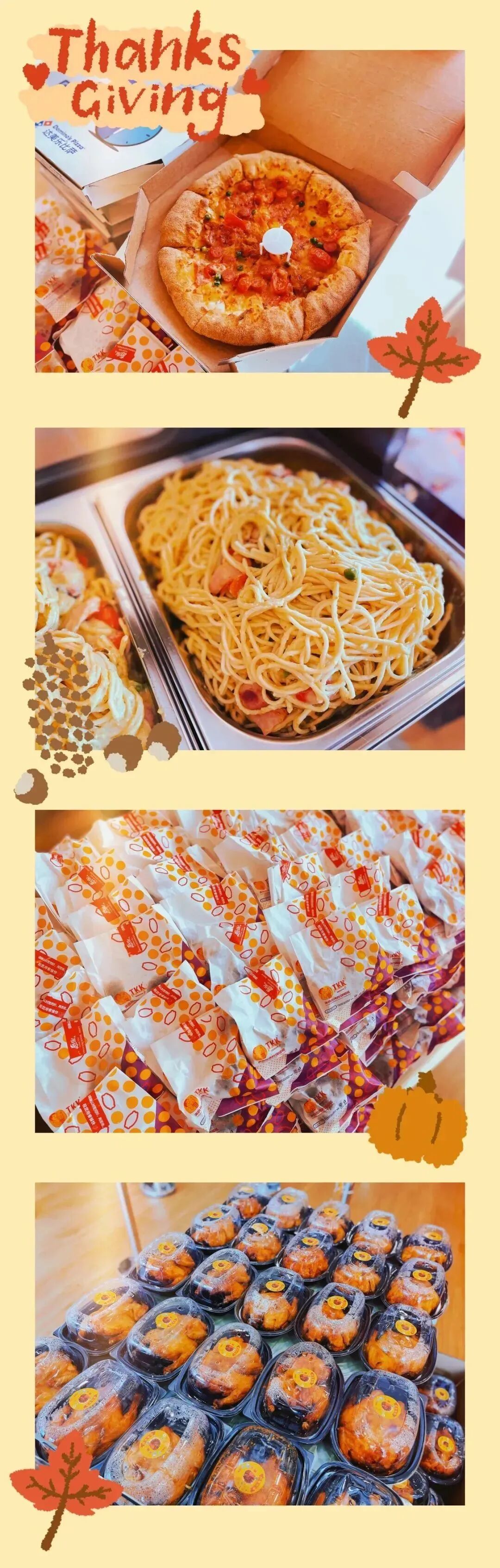 唯有爱与美食不可辜负,感恩节当然也少不了美味下午茶的助阵啦,可以准备火鸡、炸鸡、板栗、寿司等等来满足员工们的味蕾~