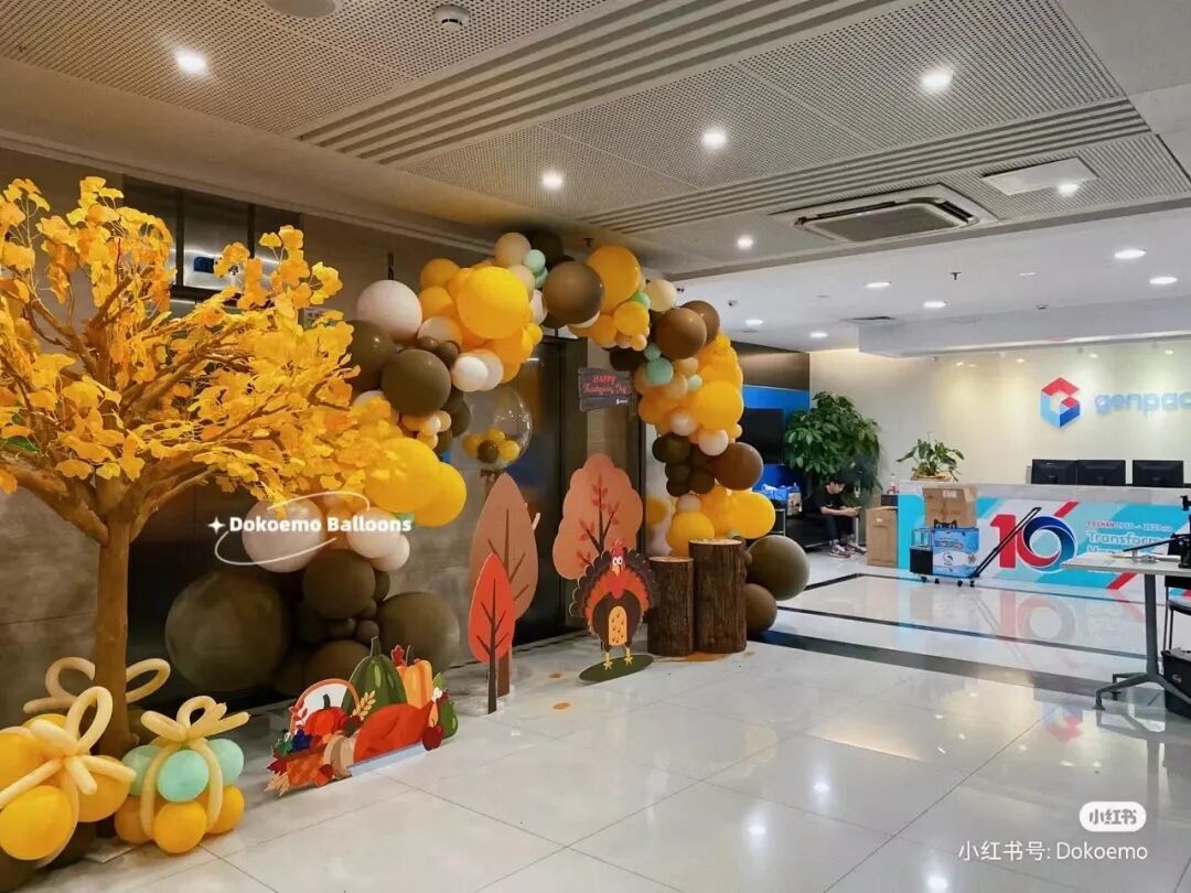 或者准备一些秋冬氛围感装饰品,比如南瓜、稻穗、气球、鲜花等。