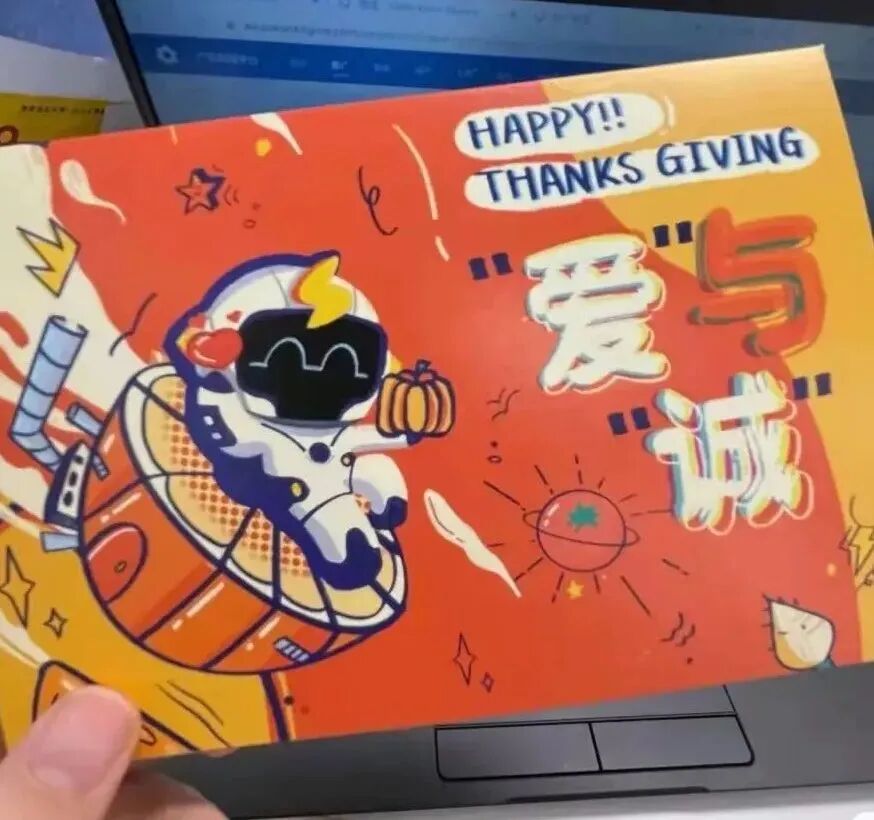 还可以提前准备一些明信片、贺卡等,组织员工写下心里话,可以写给身边的同事,也可以写给家人、爱人、朋友,之后由行政人统一进行邮寄,让感恩节的「告白」更有爱意,也更让人期待~