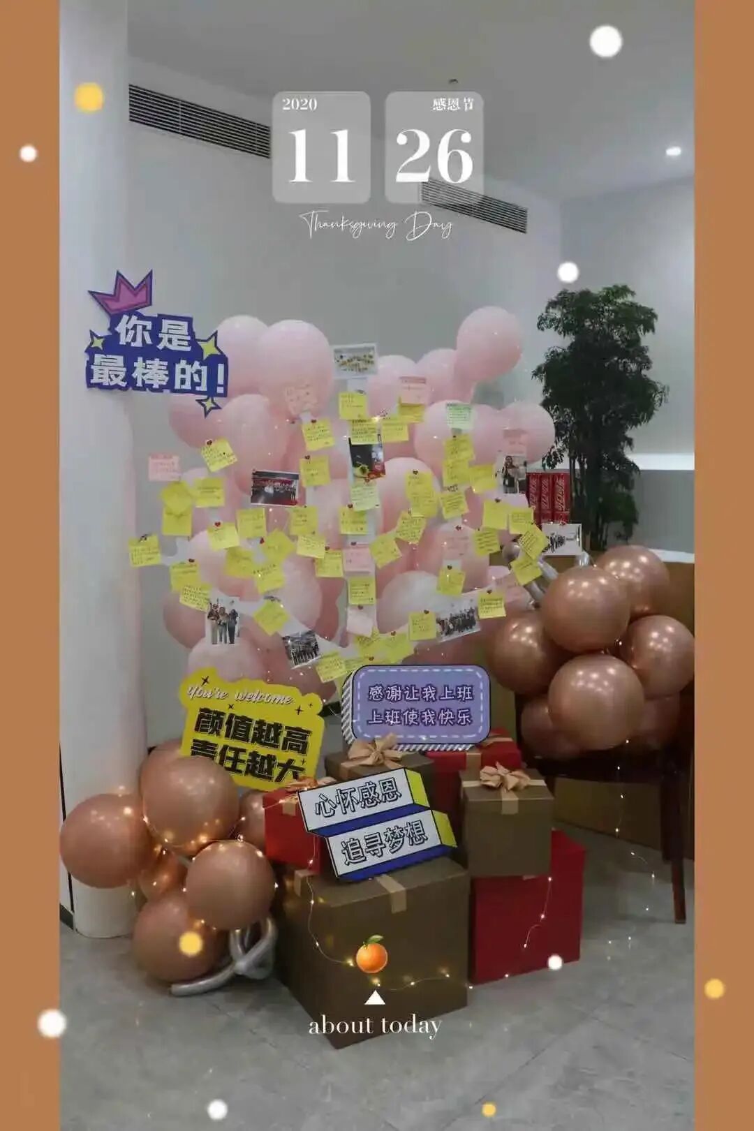 比如深圳南山尚层别墅装饰在感恩节,用气球和感恩纸条打造了一个感恩节限定「感恩树」。