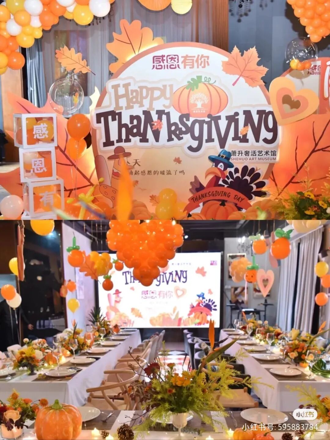 在营造感恩节氛围的时候,可以选用一些具有「暖色调」元素来装饰,用暖色让这个温暖的节日更有氛围感。