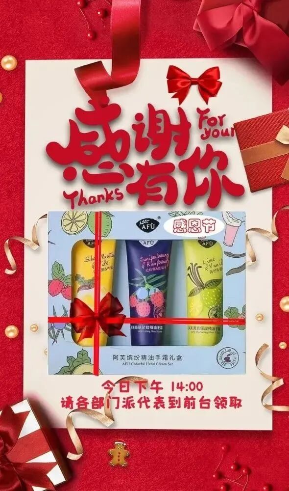 其实,还可以为员工送去感恩节专场福利,比如游族去年为员工准备了口腔义诊、手机贴膜、快剪理发等福利惊喜,让族人们在感恩节感受到企业的温暖与诚意满满~