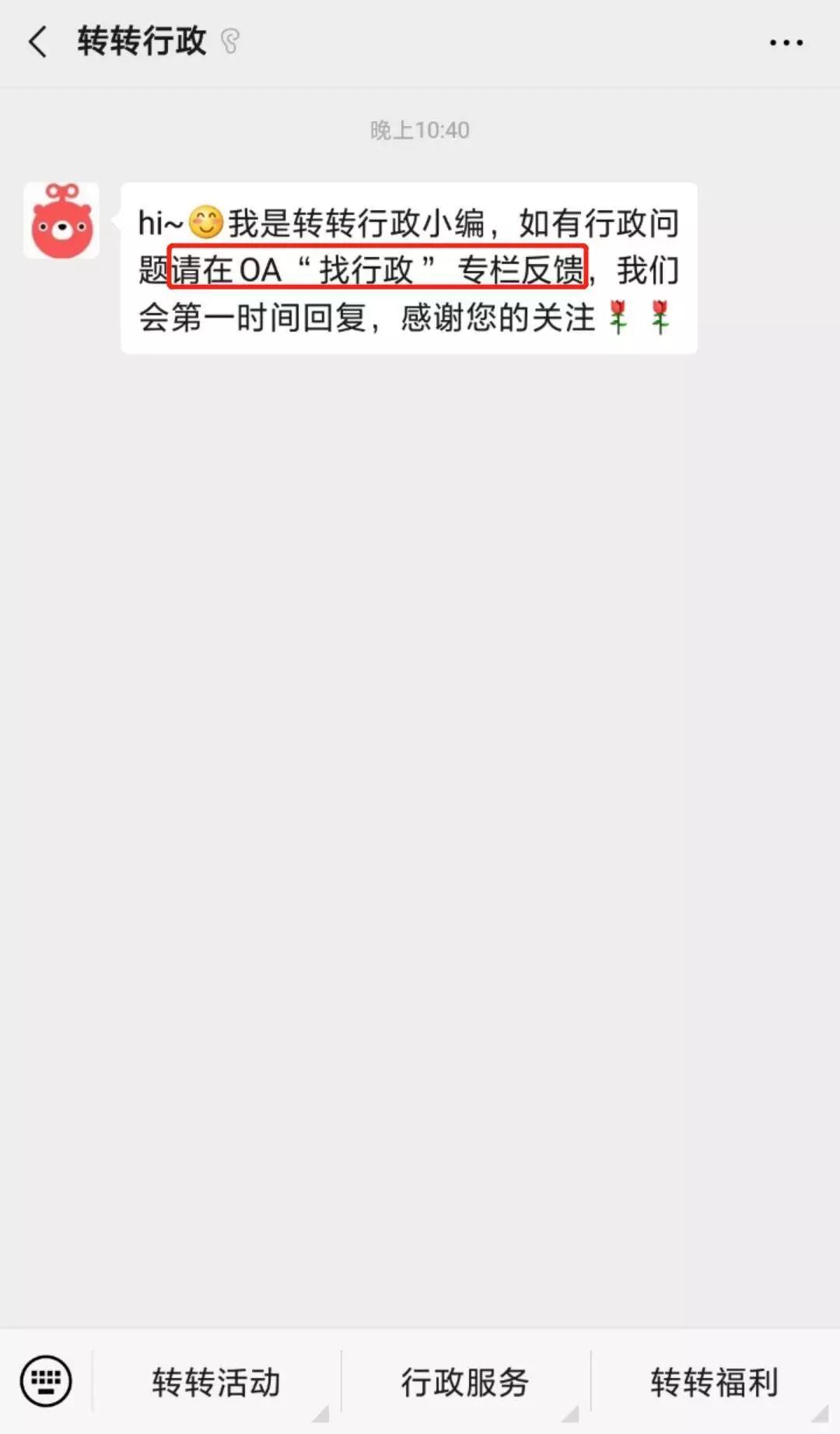 行政er可以利用「新关注回复」或「菜单栏」功能,鼓励员工建言献策;还可以利用「推送」功能,对多数员工的痛点问题进行集中处理,给予正面回应。通过公众号这个窗口,建立行政亲和力及影响力~