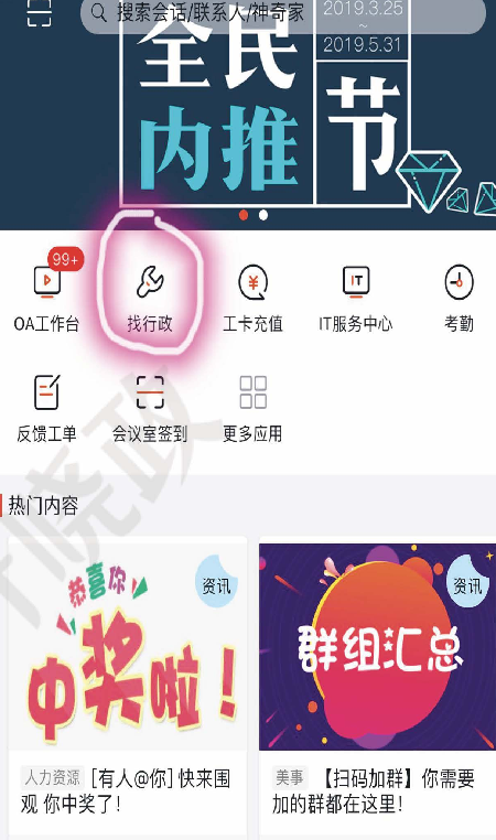 58在内部系统上搭建了“ 找行政”的入口,并将常见问题分类,可详细的进行问题申报。