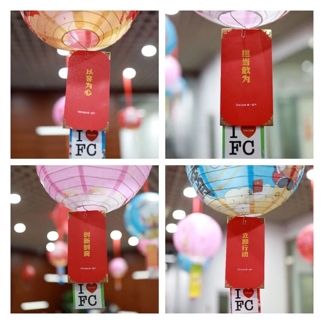 第一资产「华灯万盏,美好逐光」主题元宵节活动,延续开工仪式的许愿树和战鼓,增加了古风服装和灯笼,精心手写的灯谜结合了公司业务和文化理念,封在定制的核心价值观主题红包背面,猜中灯谜可拆封红包赢取幸运福利。