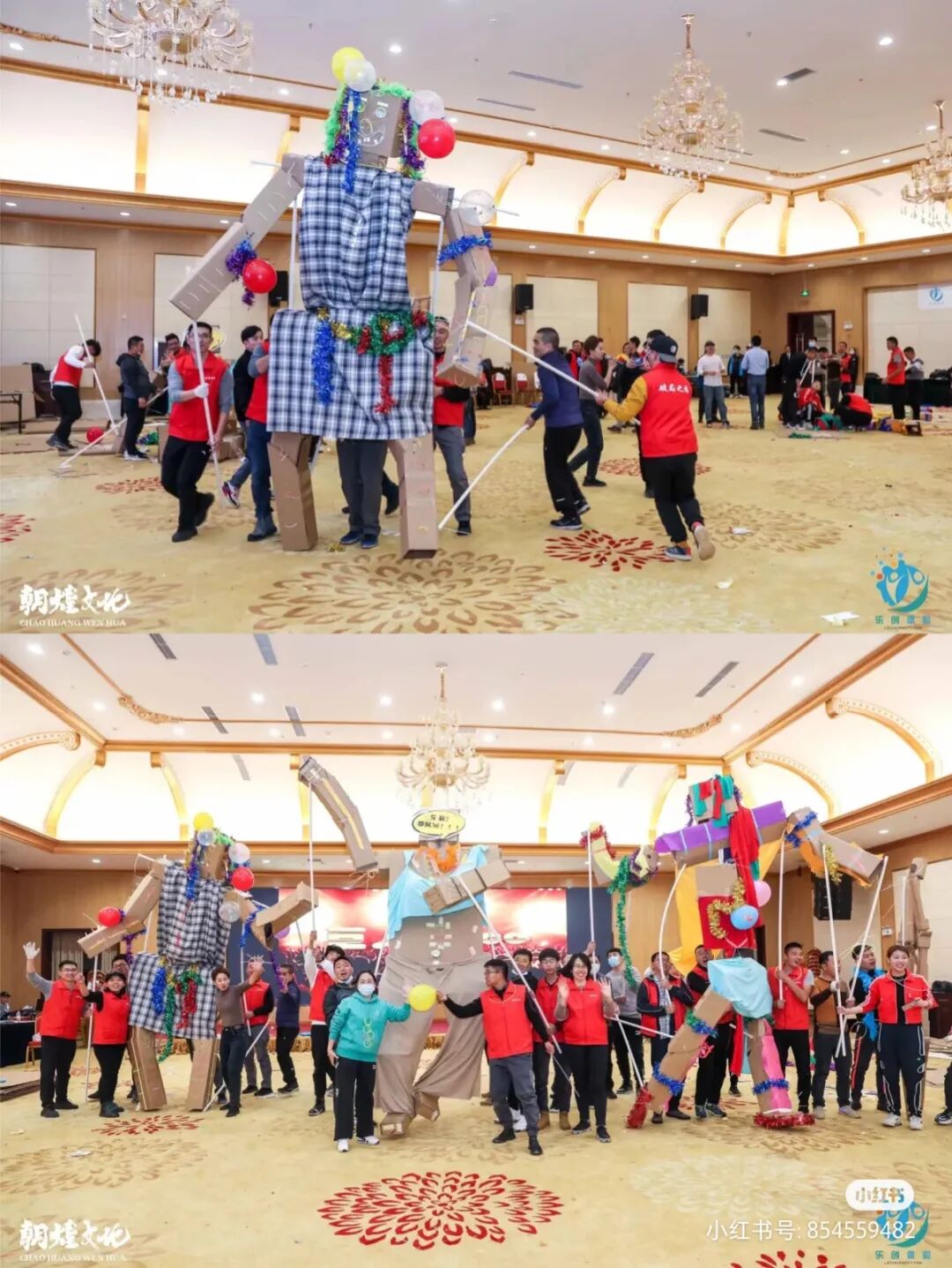 只需要一些纸盒和装饰物就能搞定。员工们分组设计、制作自己战队的巨人玩偶形象,并协力共创一支巨人舞,舞姿最出众、形象最亮眼的巨人战队即可获胜。
