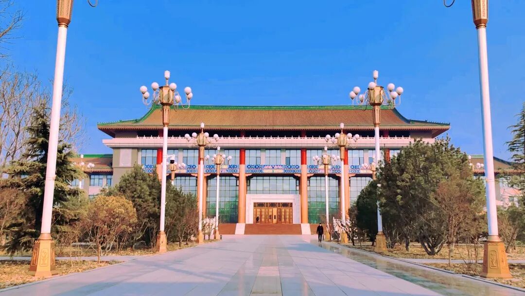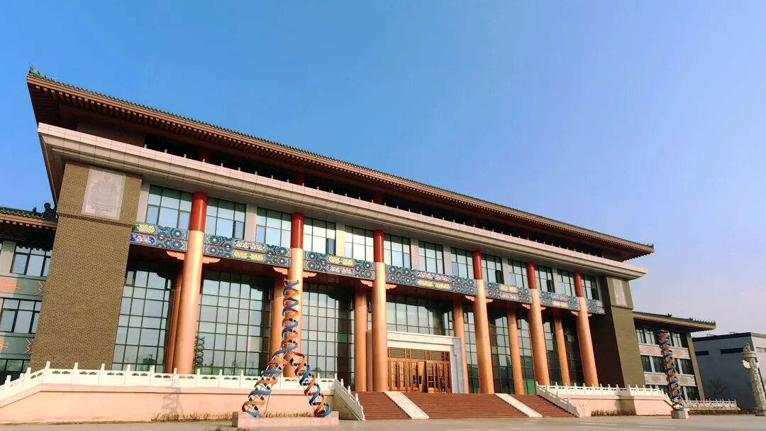穿过南门,映入眼帘的是一大片的园林绿地,尽头是一座恢宏雄伟的新中式建筑——办公楼「嬴烨宫」,楼前两座DNA双螺旋模型,凸显科学科技之重;金顶碧瓦、汉白玉栏杆、紫铜门檐等传统元素,彰显中国文化之深厚。