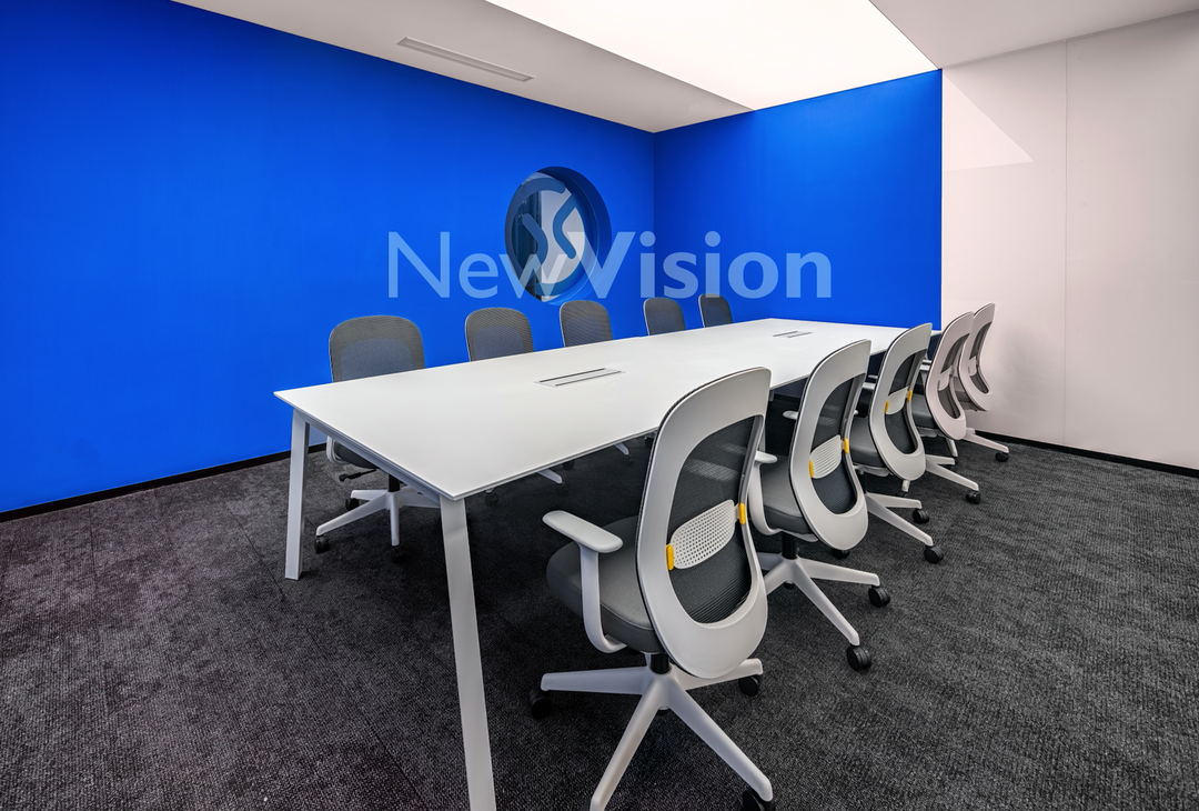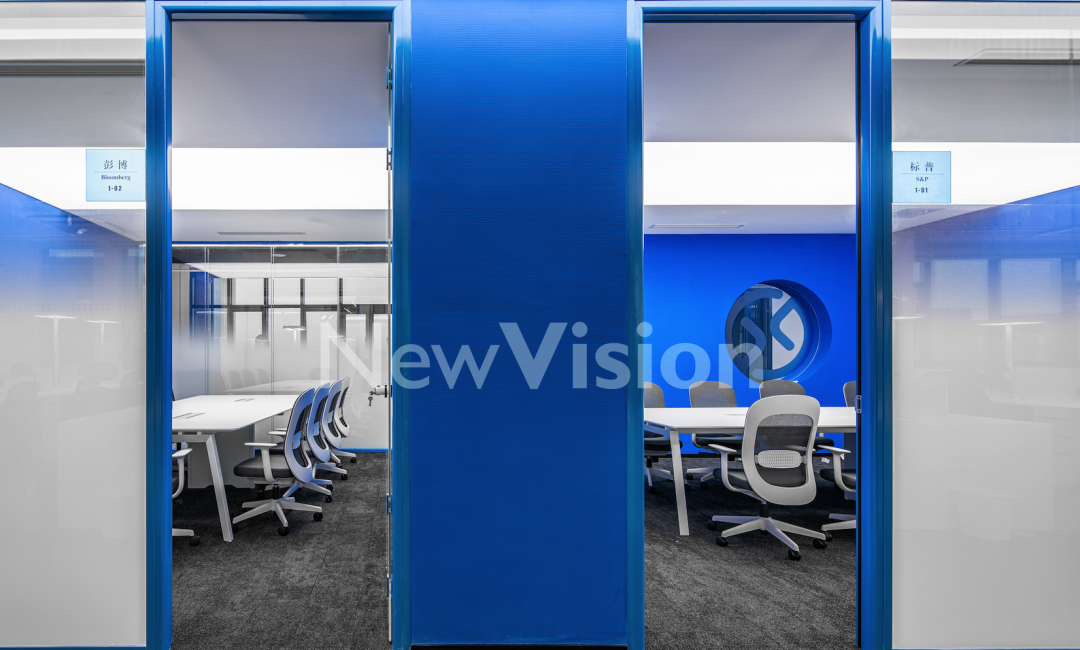 半开放式会议区,除了常见桌椅造型,还可以选择这种转角的桌子,方便多人讨论。