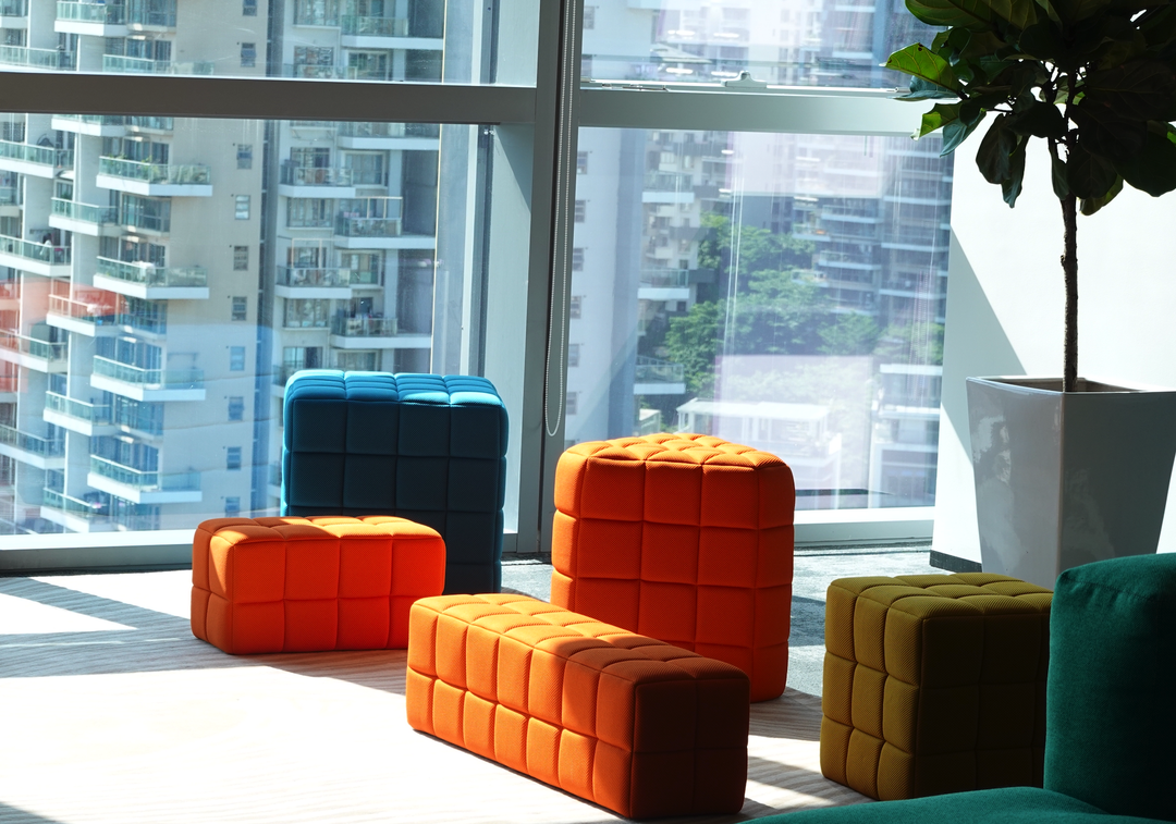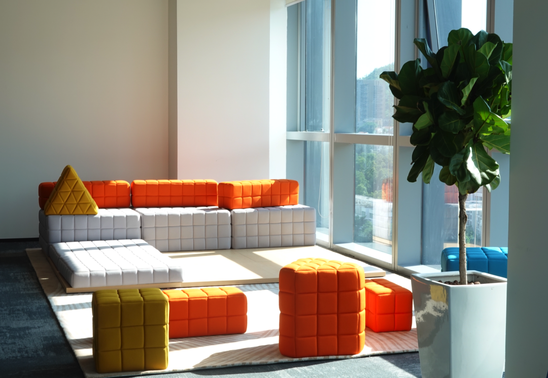休闲区桌椅一般不必太严肃,跳跃的色彩、奇异的造型都十分合适。比如下面这种几何造型的,颜值高还有趣⬇️