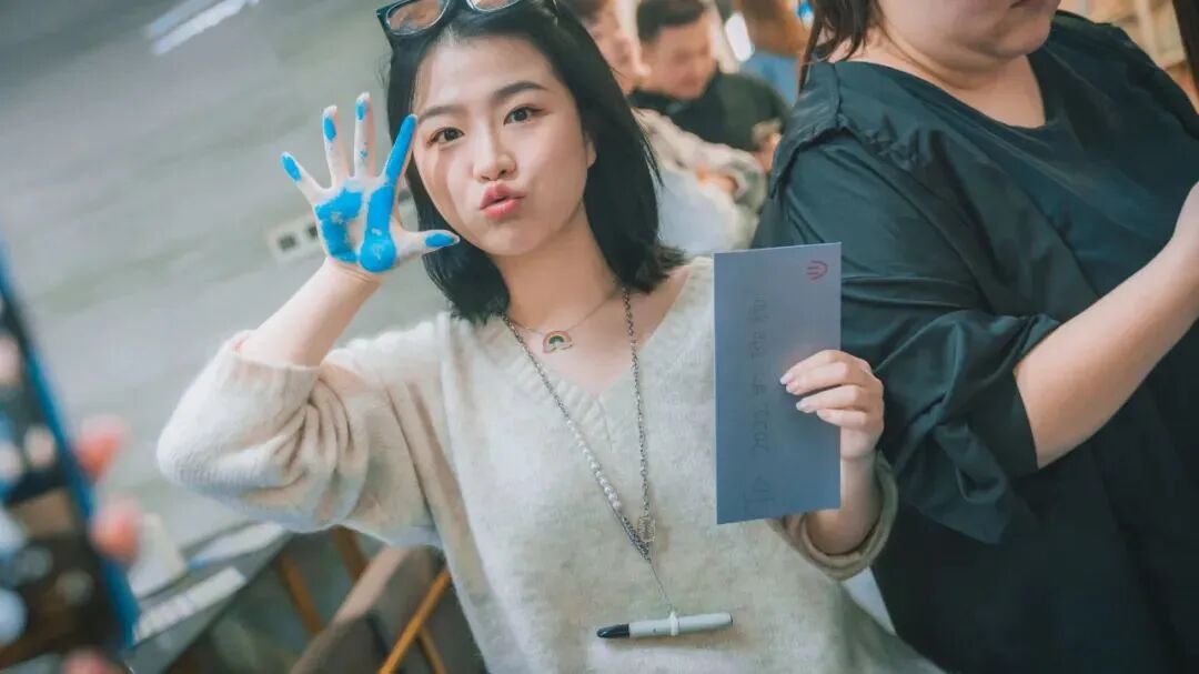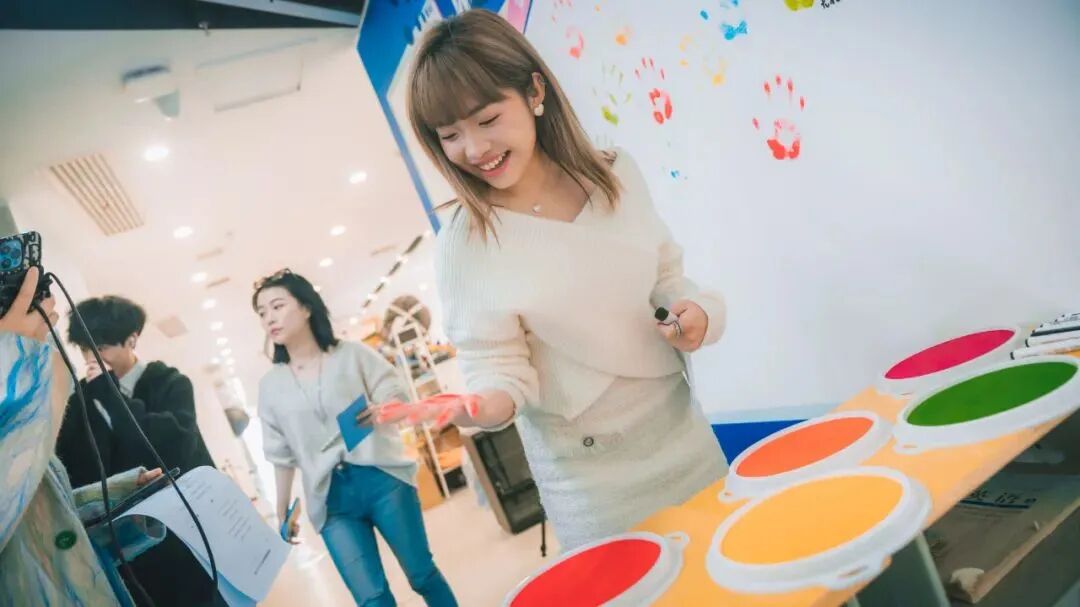 美哒文化用手印签到,共绘彩色手印墙,开启庆祝仪式。