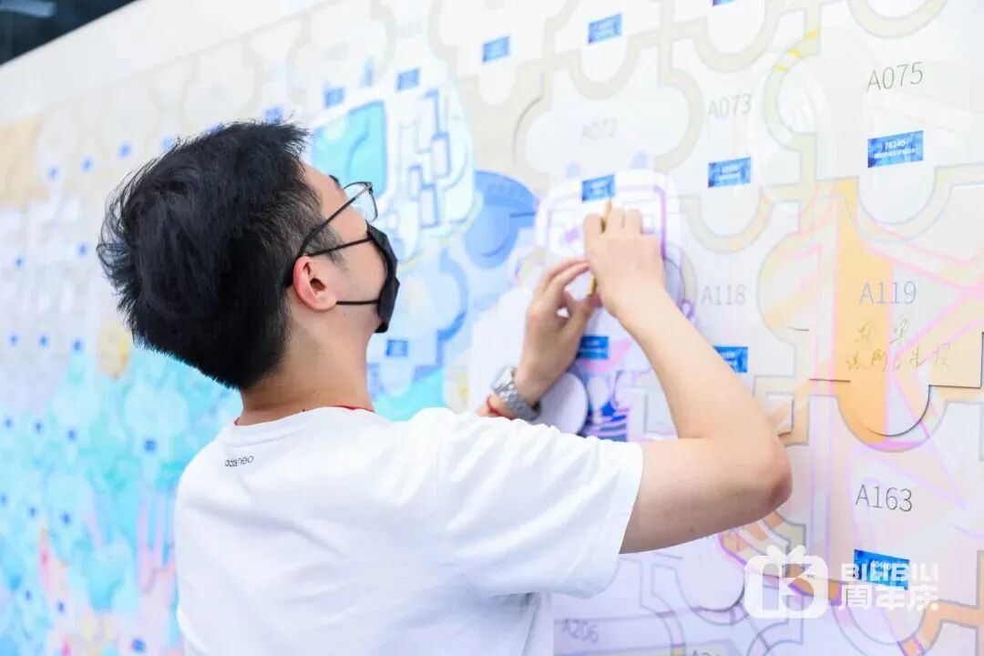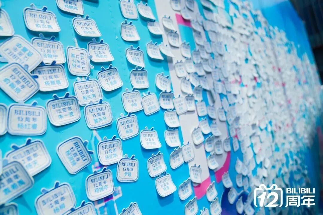 B站12周年为员工准备的伴手礼中有一份很特别的伴手礼——周年纪念姓名贴,由哔哩哔哩全体员工的姓名贴排布组成的一面纪念墙,当每一位员工亲手摘下属于自己的姓名贴,“哔哩哔哩12周年”字样才会完整显现,寓意小破站的过去、现在和未来,是由每一个小伙伴共同铸就的,感恩!