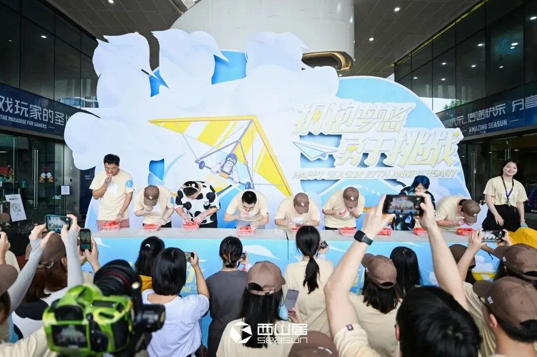 西山居27周年庆活动里最热闹的环节是一场名为「神觅汇」的趣味运动会,以部门为单位共计18个战队进行PK,合作挑战无限可能。