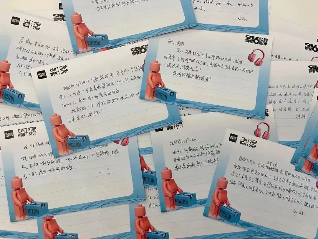 得物则是让员工现场书写“你”和得物的故事,拉开记忆的大门让员工重新回忆起与得物发生过这么美妙的故事,感恩在这里。