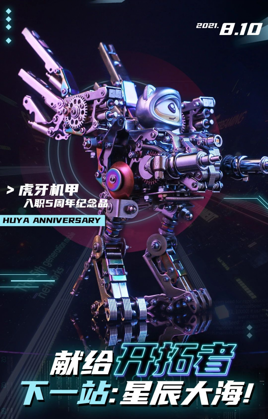 更特别的是,还为入职5周年员工特别定制了一款纪念品——可拼装虎牙机甲,机身刻有专属工号,象征虎牙开拓者的荣耀身份。