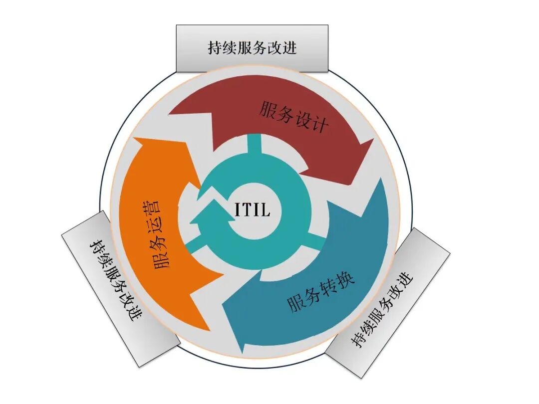 其服务生命周期由基于瀑布模型的五个阶段组成,分别是服务战略、服务设计、服务转换、服务运营和持续服务改进。