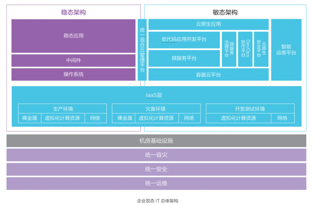 同时,为了敏态业务应用向云原生、低代码方向进行转型,应当充分利用容器云等技术。