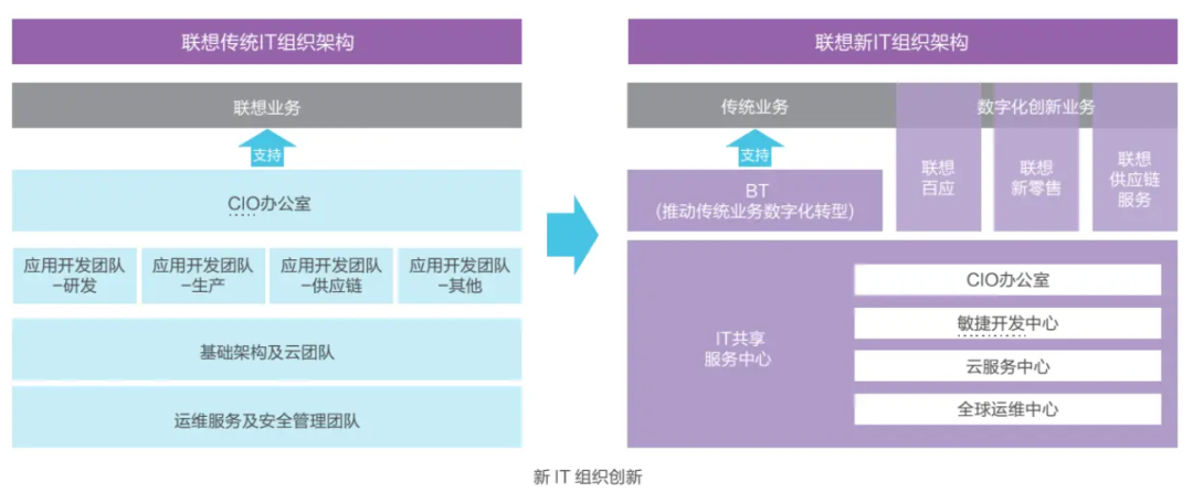 最后,联想将剩下的组织合并成了一个“IT共享中心”。
