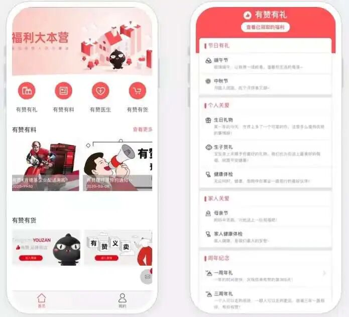▶福利产品化:有赞将福利享受变成一个线上“福利大本营”的选择平台,员工不仅可以通过平台自行查看福利内容,也将医疗、体检等健康服务嵌入其中,可以方便员工使用。