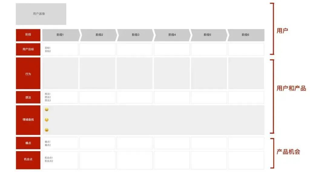 b.用户和产品:用户行为(doing)、触点(touch point)、想法(thinking)、情绪曲线(feeling/experience);