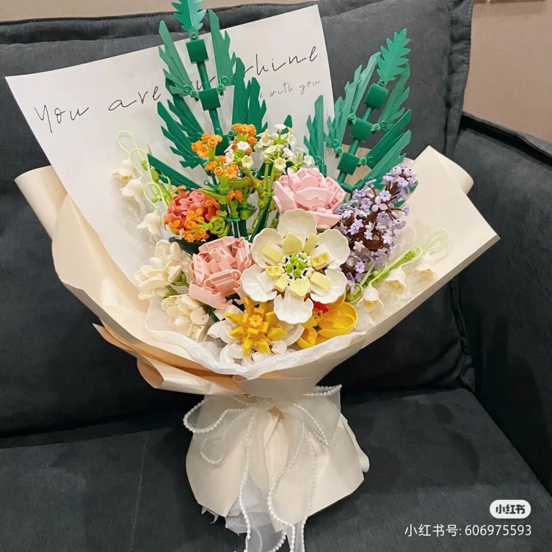 尤其是在母亲节,为母亲献上一束花,无论是亲手制作的鲜花花束,还是实惠的“水果花束”、“蔬菜花束”,还是可以和母亲、孩子一起互动的积木花束都是可以的~