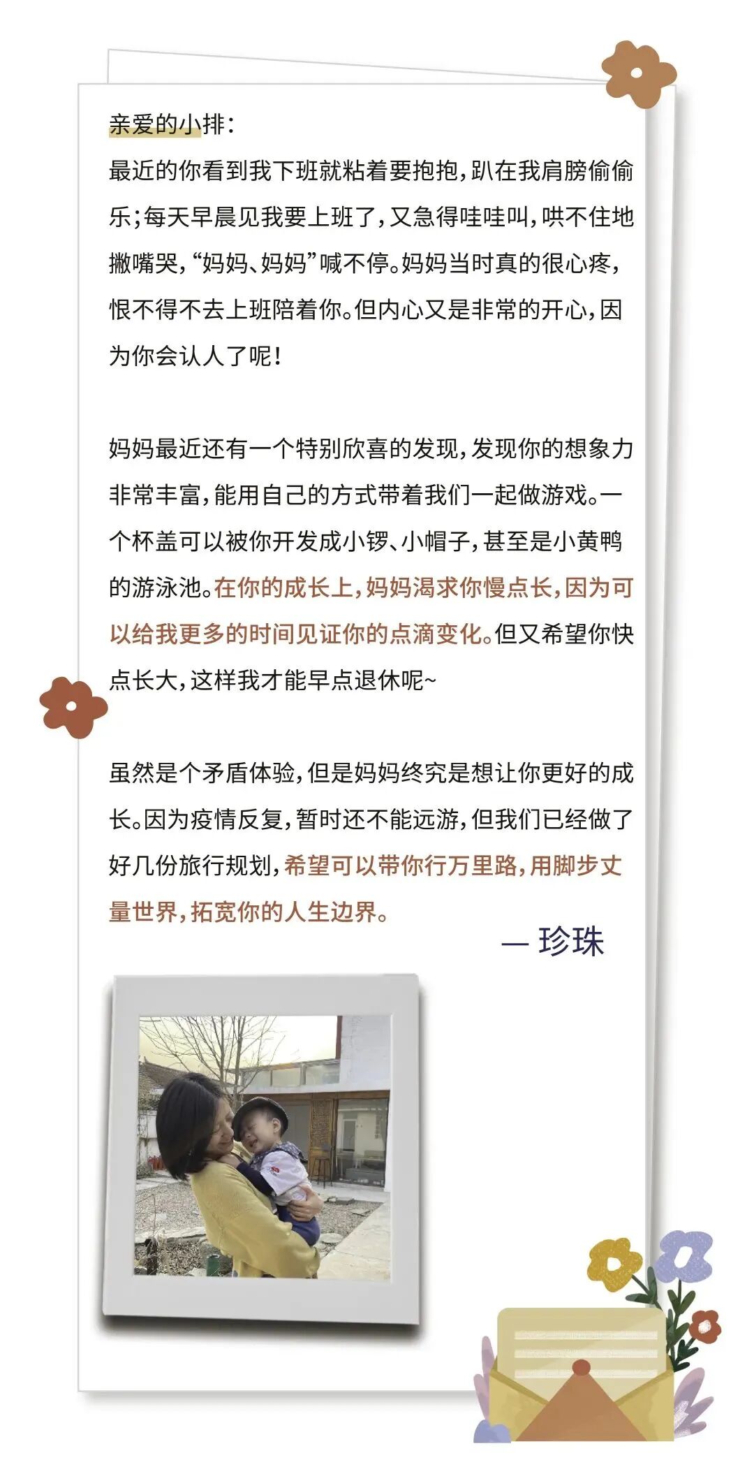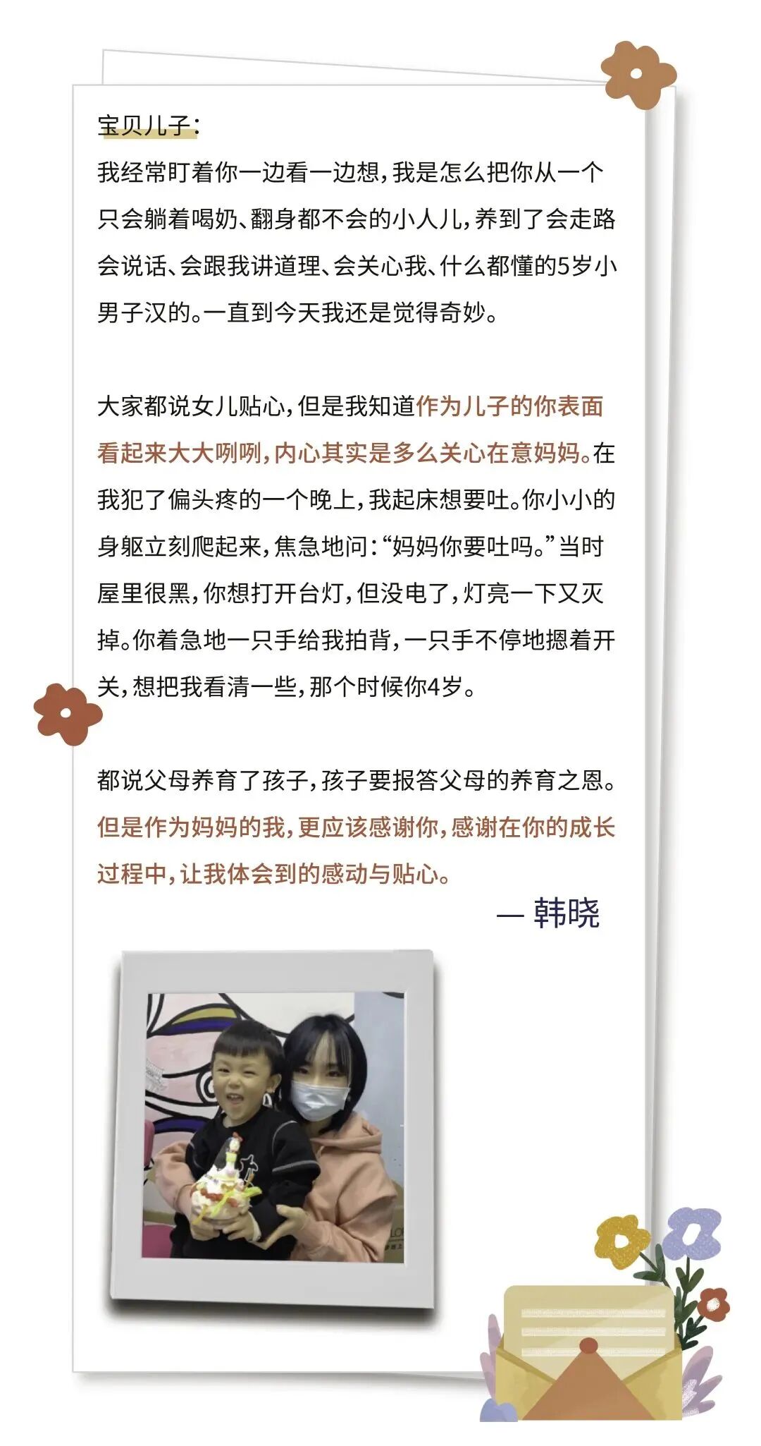 除了给母亲写信,还可以调换过来,组织当妈妈的员工给孩子写一封信,将一些平日里不轻易对宝宝说的心里话写下来。凤凰网去年就在内网组织了“听听iFeng妈妈的声音”信件征集活动,收到很多iFeng妈妈写给宝宝的信,一起来感受一下她们的温暖与真挚吧⬇️